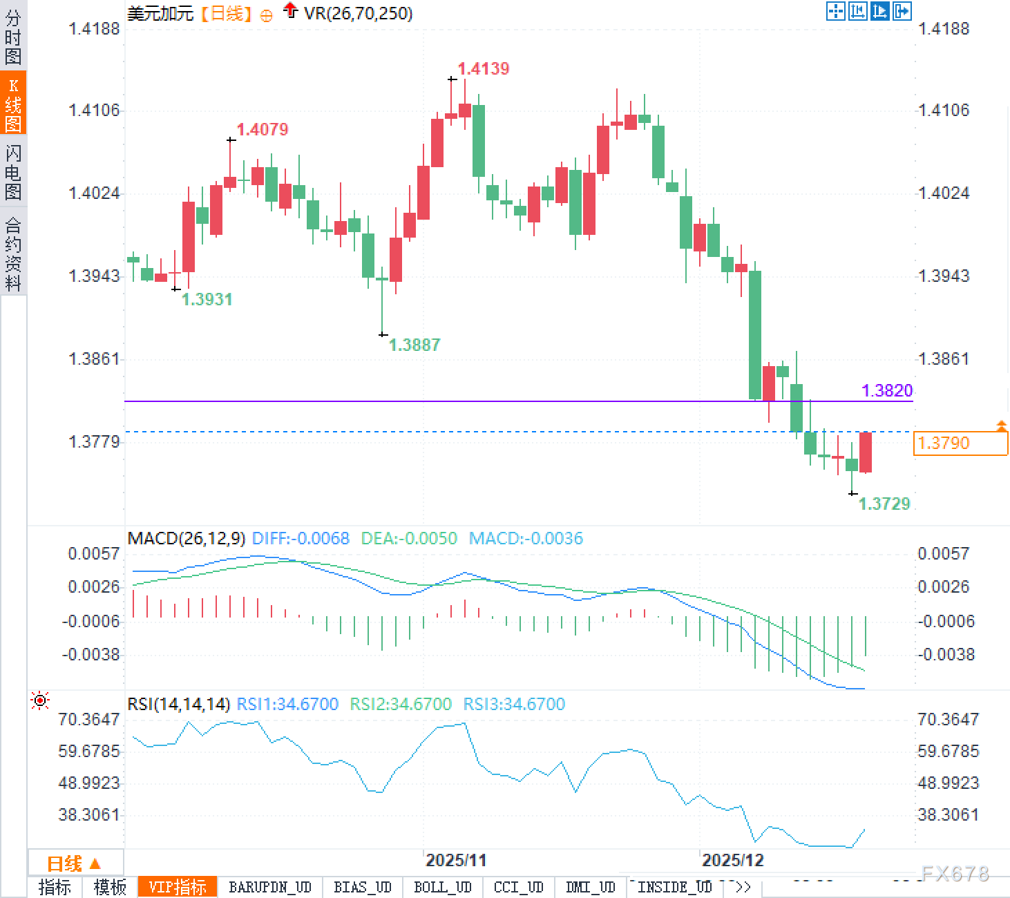 把两端放在一起看,就能理解美元兑加元为何出现“跌到低点后又被拉回”的结构:美元端虽然受到劳动力转弱的压制,但降息预期的边际变化可能已被部分计入;加元端在加拿大央行“利率合适”的锚定下缺少新的催化剂去大幅走强。于是,汇价容易在关键数据前进入再平衡阶段:美元的回补需求与低位空头获利了结,共同推动从1.3745附近向上修复至1.3780、1.3790区域。