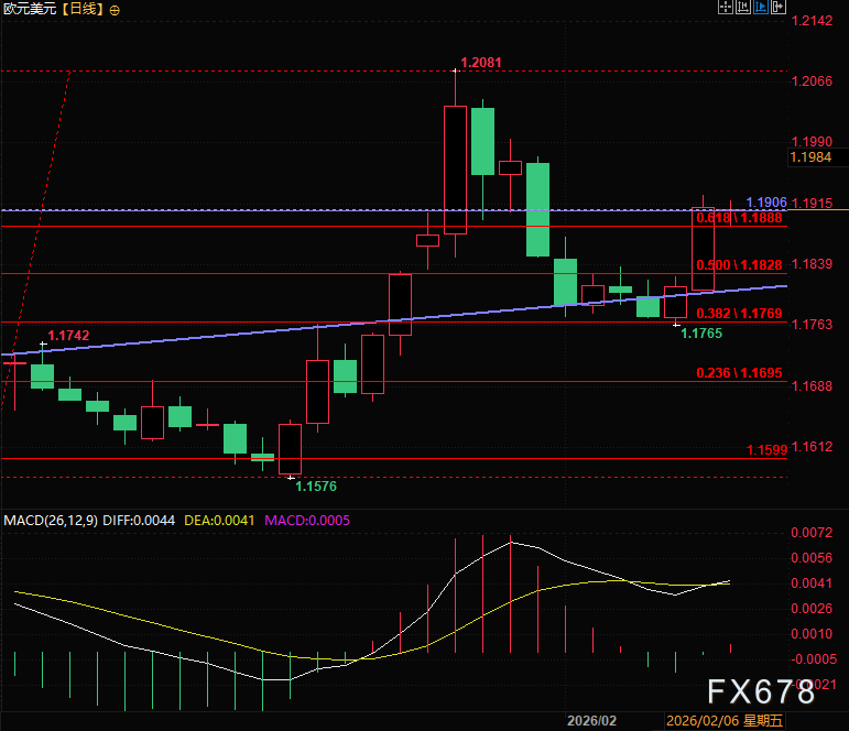 汇通财经APP讯——周二(2月10日)亚欧时段,欧元兑美元小幅回调,守住大部分自上周五以来的反弹涨幅,上周五开始汇价触及1.1765低点后展开强势反弹,一度突破1.1900关键关口。目前该货币对维持窄幅震荡,撰稿时交投于1.1891一线,稳守一周高点区间。